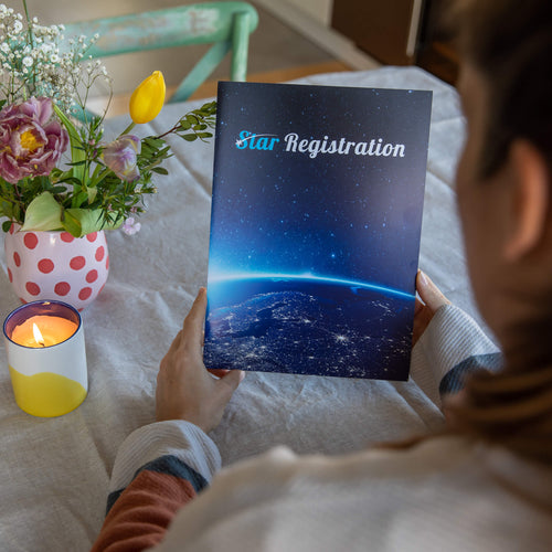 Grâce à nos nombreuses années d'expérience et à nos processus optimisés, nous pouvons enregistrer rapidement votre étoile et expédier vos documents en seulement 2 heures. Et pour rendre les choses encore plus pratiques, nous vous enverrons également vos documents en PDF à l'avance.