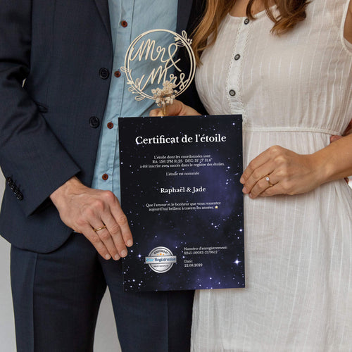 Absolument ! Vous pouvez personnaliser le certificat d'étoile avec un message spécial, une dédicace ou une date symbolique, afin de le rendre encore plus personnel pour le destinataire.